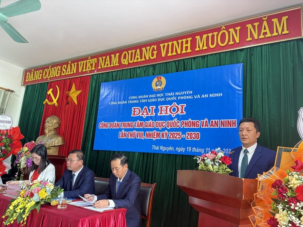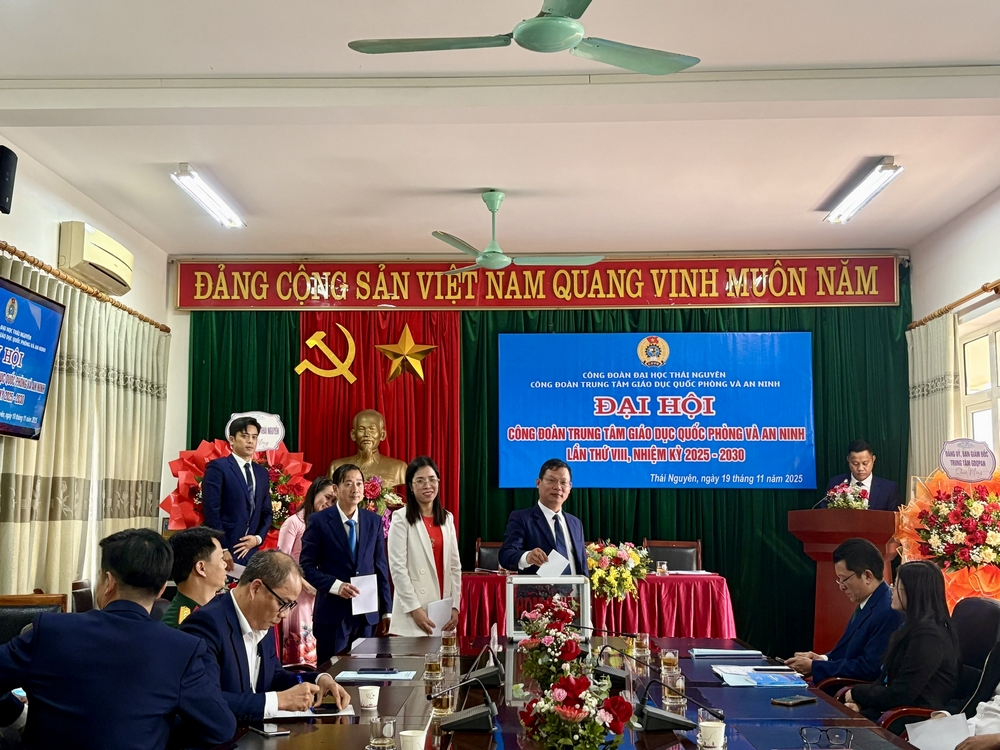 19/11/2025Chiều ngày 19/11, trong không khí thi đua lập thành tích chào mừng Ngày truyền thống Giáo dục quốc phòng và an ninh (19/11) và Ngày Nhà giáo Việt Nam (20/11), Công đoàn Trung tâm Giáo dục quốc phòng và an ninh Đại học Thái Nguyên đã long trọng tổ chức Đại hội Công đoàn lần thứ VIII, nhiệm kỳ 2025-2030.