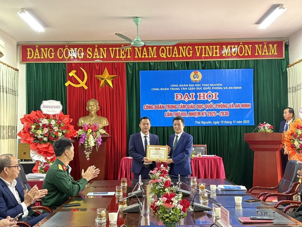 Nhân dịp Đại hội, Công đoàn Đại học Thái Nguyên đã thay mặt Công đoàn Giáo dục Việt Nam trao tặng Công nhận “Cơ quan, đơn vị, doanh nghiệp đạt chuẩn văn hóa” giai đoạn 2023-2025 cho Trung tâm Giáo dục quốc phòng và an ninh Đại học Thái Nguyên. Đây là phần thưởng cao quý, ghi nhận sự nỗ lực của toàn thể cán bộ, viên chức và người lao động Trung tâm trong việc xây dựng môi trường làm việc văn minh - đoàn kết - kỷ cương - trách nhiệm.