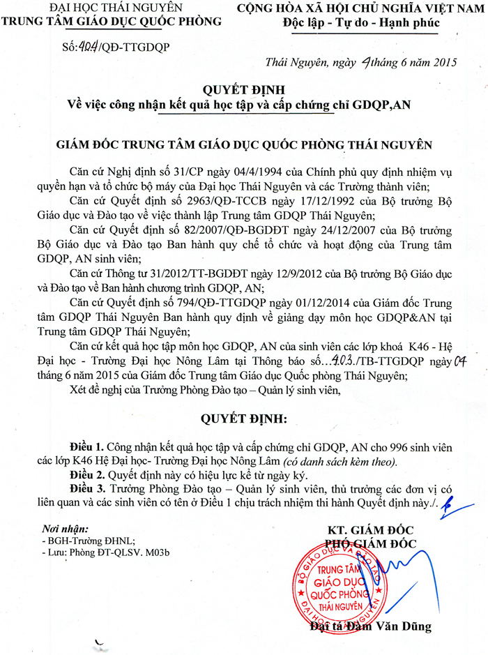 - Thông báo mời nhận hồ sơ yêu cầu Gói thầu số 01: Cung cấp suất ăn cho sinh viên tại Trung tâm GDQPAN ĐHTN